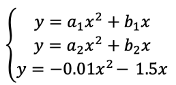 若同時畫出下列三個方程式的圖形,希望水柱有散開的感覺(如右圖),